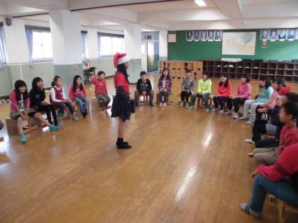 久しぶりに全員がそろって楽しい会を開きました。なぞなぞ,ダンス,ゲーム,お楽しみ会サークルを中心に準備してくれました。もうすぐ楽しみな冬休みもやってきますね。
