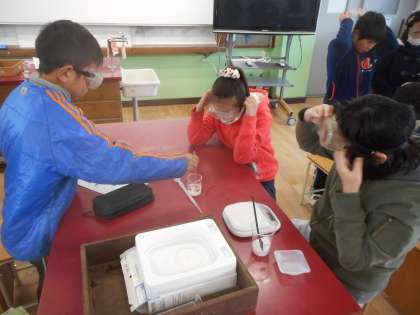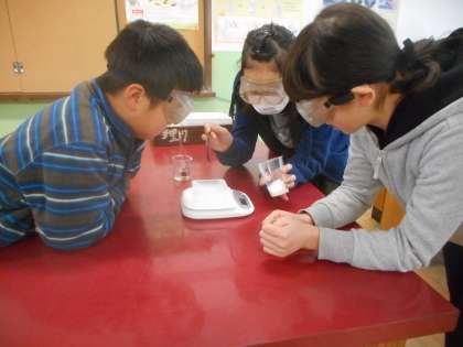 食塩をはかったり,水をはかったりするのも,だいぶ慣れて上手になってきました。