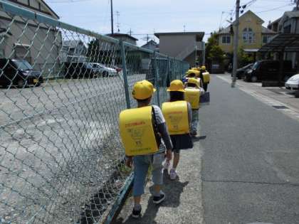 昨日は不安な表情だった子も,今日は少し自信をもって自分のお家が近くなると,