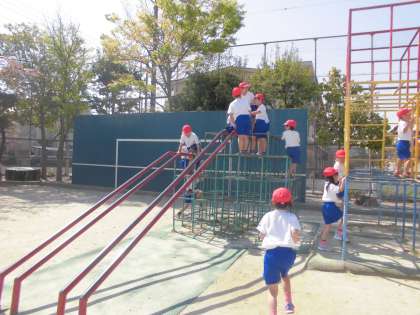 並び方や先生のお話を聞いた後,総合遊具・スーパージャングルジム・うんてい・ジャングルジムなどで遊びました。