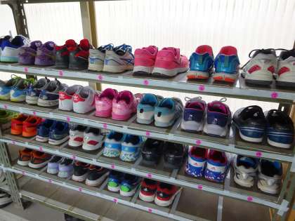 6年生の靴箱を見ると,下靴がぴしっとそろえて並べられていました。