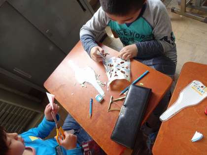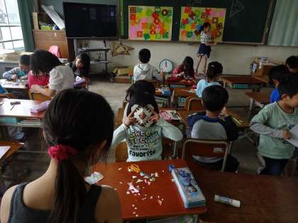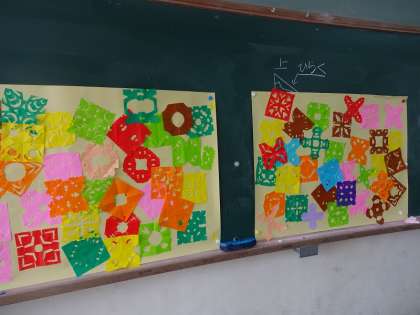 図工の時間に折り紙を使って「切り紙」をしました。みんなきれいな模様に感心して,一生懸命取り組んでいました。