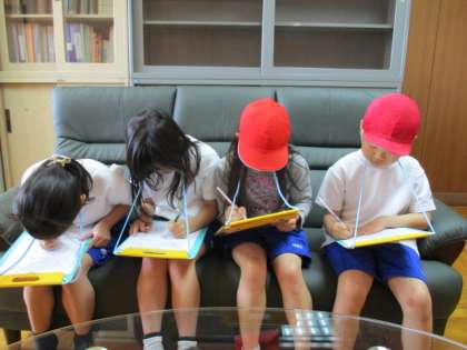 初めての校長室に,緊張気味。一生懸命メモをとっていました。