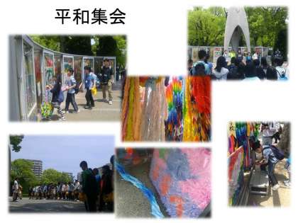 原爆ドームを見学し,平和集会を行いました。1年生から5年生にも折ってもらった鶴ももちろん忘れずに持っていきました。二度と戦争はないようにしていきたいものです。