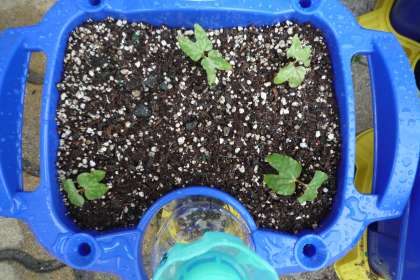 「芽が出てる!」「こっちも出てる!」と大喜びで報告し合っていました。