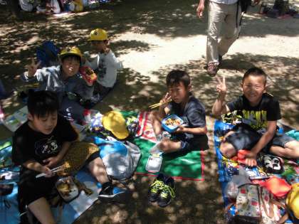みんなおいしそうにお弁当を食べ,その後は元気いっぱい遊んでいました。