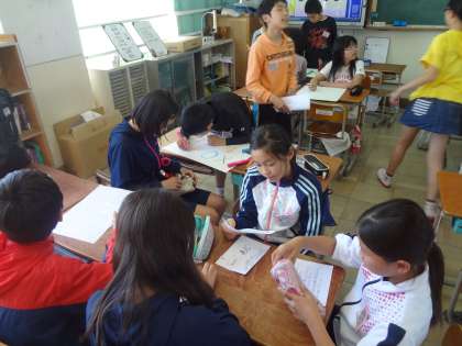 学級会で話し合いハッピーフレンドリーのお店が決まりました。お店が決まると,どんどんやることが決まり進んでいきます。