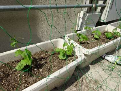 ツルレイシ(ゴーヤ)はすくすくと育っています。