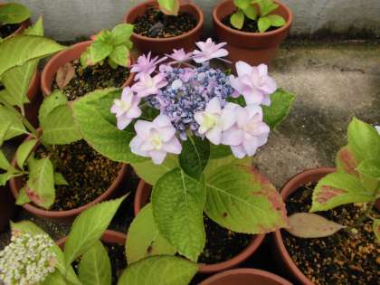 昨年度 栽培委員会の児童が挿し木をしたあじさいが小さいながらも花をつけました。