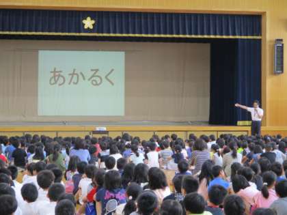 今日の朝会では,教務主任の黒田先生から,あいさつについてお話がありました。