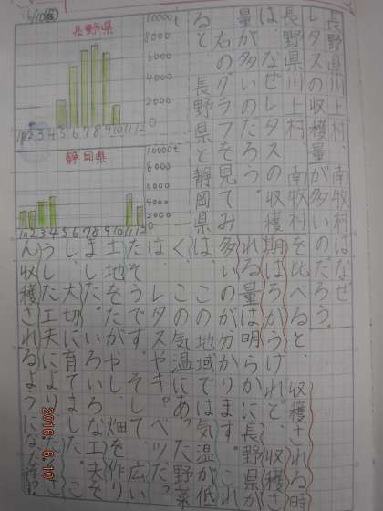高い土地に住む人々のくらしや山地に住む人々のくらしについて,教科書や資料集を使って調べました。自分の課題を決め,ノートにまとめました。