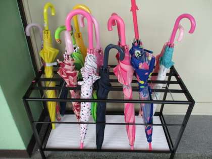 古くなってずいぶん痛んでいた傘立てが新しくなり,一本一本入れやすくなりました。