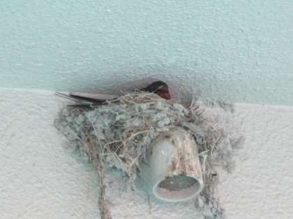 けれど,そのすぐ後から,今度はピロティの北側の軒下に巣を作り始め,今は卵を温めている様子です。
