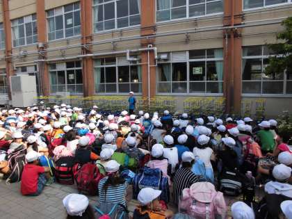 7時40分から出発式を行いました。今日は梅雨の合間のとてもいいお天気です。4年生の普段の行いがいいのでしょうね。今日から三日間の活動で子どもたちがどのように成長してくれるのか楽しみです。
