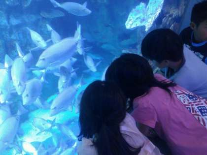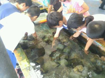鳥羽水族館のセイウチショーでは,本校児童がセイウチと輪投げやチューをして生き物とふれあっていました。