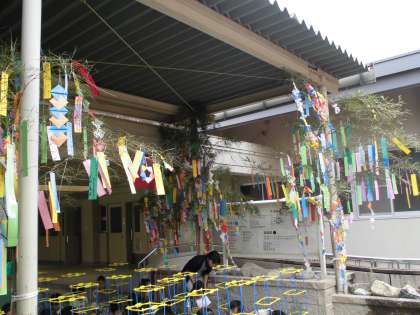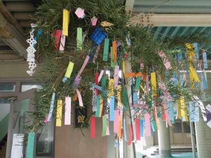 ピロティに七夕飾りが登場しました。地域の方に笹をいただき,PTAさんが飾りや短冊をつけてくださいました。短冊には子どもたちのかわいい願い事が書かれています。