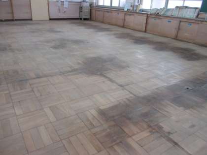 長年の使用で痛みが目立っていた職員室の床の改修をします。