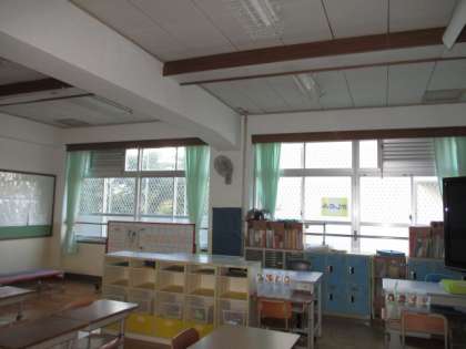 これで,全学級,遮光カーテンがつき,グリーンの新しいカーテンになりました。