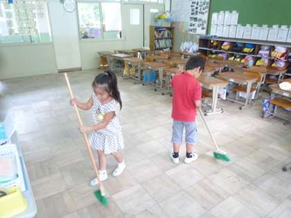 掃除の音楽が鳴ったら,すぐに掃除を始めています。