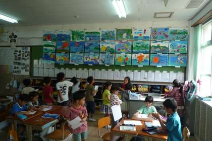 お話の絵が出来上がったので,友達の作品の良いところを見つけました。