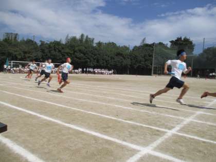 体育大会は,体育館建設工事の為狭くなった運動場で,力いっぱい競技する生徒たちの姿がさわやかでした。