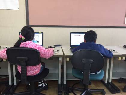 かしのみ学級低学年は,パソコン学習にも取り組んでいます。