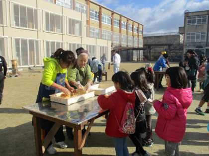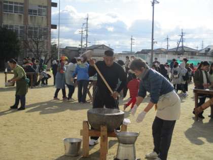 たくさんの子どもたちが,つきたてのおもちのおいしさに,何度もおかわりをしていました。