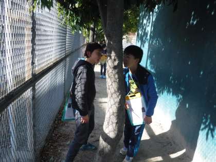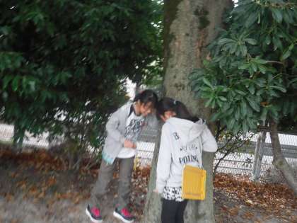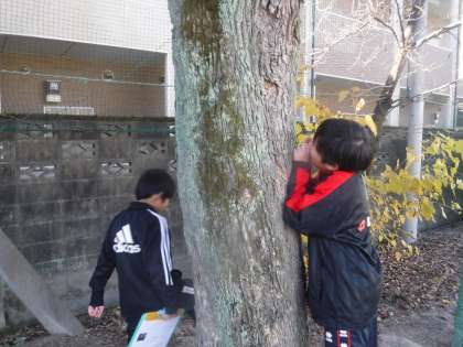 運動場や中庭の木とじっくり向き合う時間をとりました。