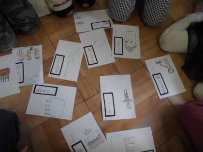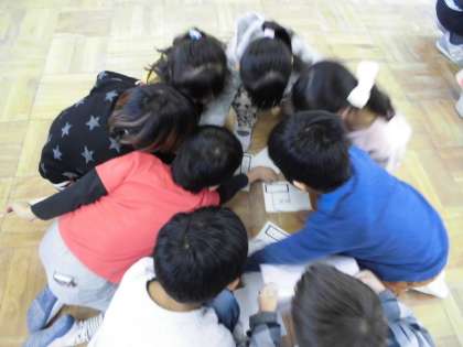国語科の学習で日付と曜日のかるたづくりをしました。自分たちで作ったかるたをグループで楽しみました。楽しんで正しい日付や曜日の読み方を身につけていけるとよいと思います。