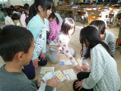 自分で作ったかるたをお友達に見てもらったり、皆で一緒に探すのが楽しいようで、活気あふれる大会となっています。