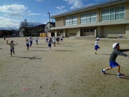 樫原小学校では、体育科の授業でなわとびが始まろうとしています。北風に立ち向かうような元気いっぱいの1年生です!!