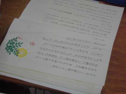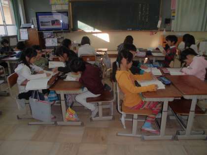 「わたしも歌うのは好きだけど,頭の中ですぐに歌が作れるすみれちゃんはすごいなぁ」「ぼくもすみれちゃんと同じで,おかあさんに早く宿題をしなさいと言われるといい気はしません」とノートに感想を書いていました。