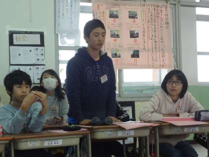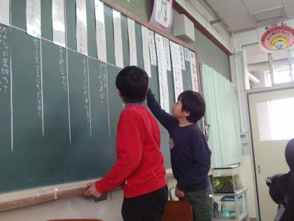学級会で『クリスマスパーティー』の内容を決めました。話し合う内容,意見の内容の質も上がり,多くの人が自主的に発表できるようになっています。