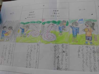 国語ではたから島の地図をもとにオリジナルのお話を考えています。