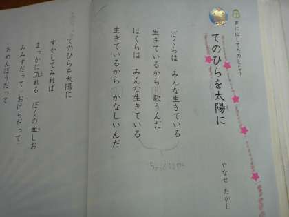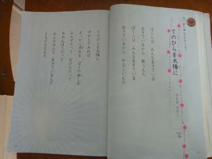 休み明けは「てのひらを太陽に」の音読から始まりました。