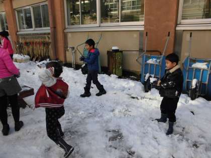 午後からも雪が降り,「まだまだ雪あそびができるぅ!」と喜んでいる子どもたちです。登下校では,雪道に気をつけて安全に歩いてほしいです。