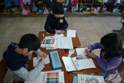 お店屋さんごっこの準備です。ていねいに仕上げていました。