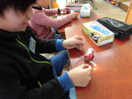 理科では豆電球を使い,あかりのつく方法を調べました。
