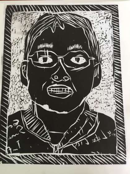3年生は,自分の顔を彫りました。