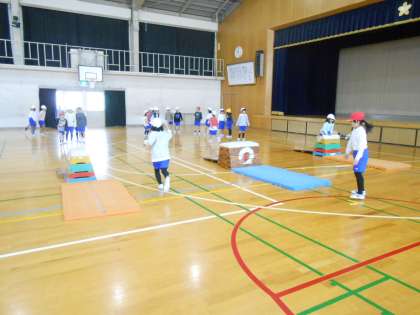 体育科でとびばこ遊びを学習しています。いろいろな跳びかたに挑戦することから,高さや距離,美しさにポイントを置いて跳ぶことに意識をおいて跳ぶことを頑張っています。