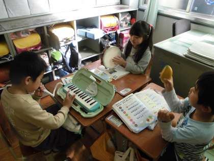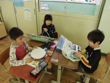 音楽パーティーに向けて班で相談しながら選んだ曲の練習を始めました。楽器やリズムなどを友達と話し合いながら決め,協力して練習しています。それぞれの班で工夫し,楽しく自信をもって発表に臨めるといいなと思っています。