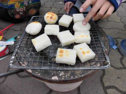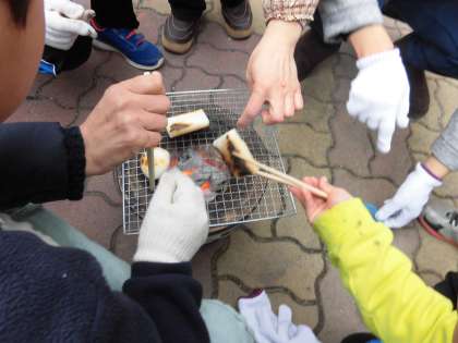3年生では社会科の「昔の道具調べ」で学習した七輪を使い,おもちを焼きました。