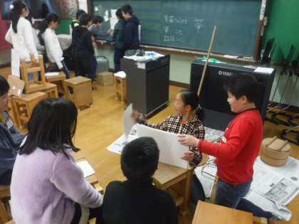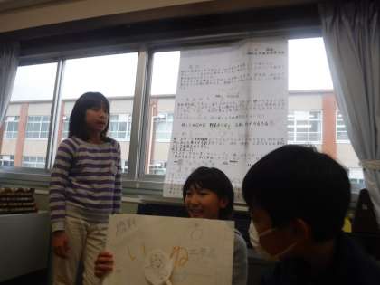 来週の第一回お米EXPOに向けて,今日は学年で発表の交流をしました。