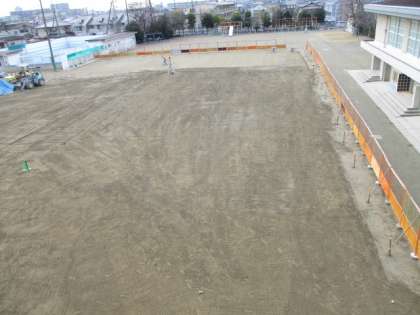 運動場北側の工事が終了し,来週からはいよいよ仕上げの工程に入ります。