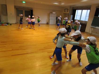 狭くてもできる鬼ごっこやしっぽとりなど,楽しんで活動できました☆
