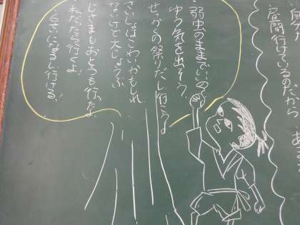 臆病な豆太は神様の祭りに行こうとしません。今日の授業では,そんな豆太に手紙を書きました。