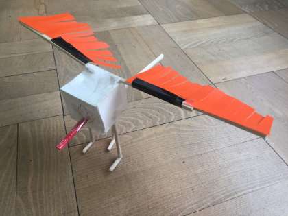 恐竜は,さいころ型の箱に割り箸でしっぽや脚などを付けました。