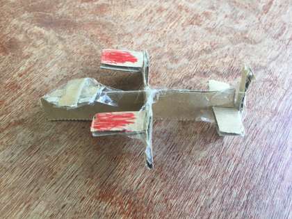 飛行機は,段ボールを使って,あっという間に作りあげました。
