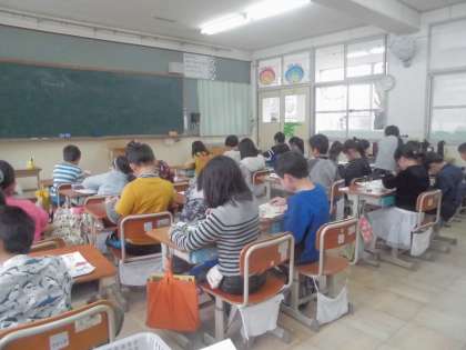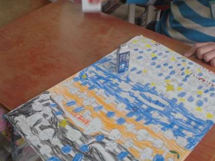画用紙にペンで書いたり,色紙を貼ったりして,材料を工夫してすごろくを作っています。今日は試に,自分で作ったすごろくを自分でやってみました。「たのしい〜。」「ゴールできた!」と,楽しく取り組んでいました。