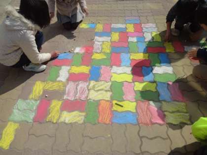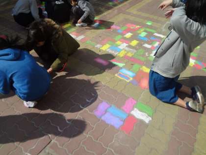 図工科の造形活動ではチョークを使った活動をしました。みんな夢中で取り組んでいました。